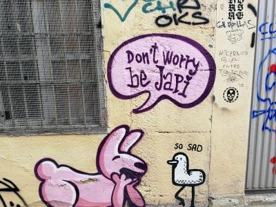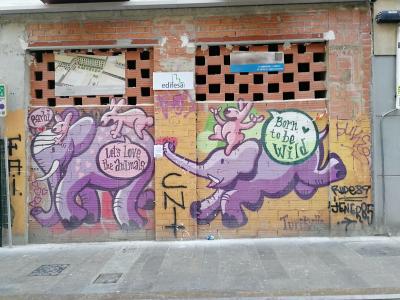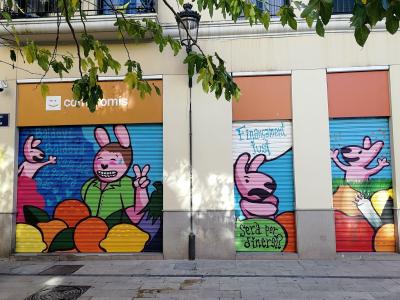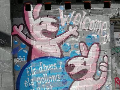 Les drôles de lapins roses de cette graffeuse ont envahi Valence et sont de plus en plus vus dans plus d'endroits (parfois accompagnés d'un petit canard blanc). Il s'agit de scènes ironiques (qui sont généralement accompagnées du titre Pesimismo Mágico), mais aussi de dénonciation sociale et de soutien au féminisme.