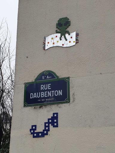 Mr Djoul est un street artiste mosaïste français toujours accompagné de son petit alien.