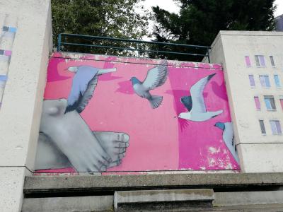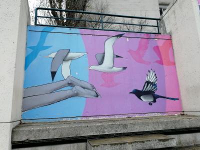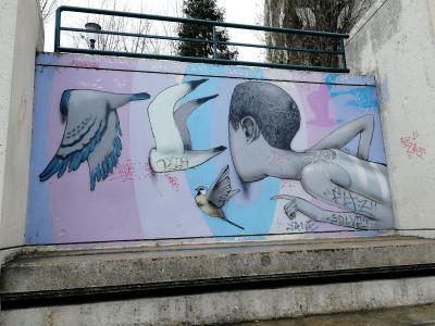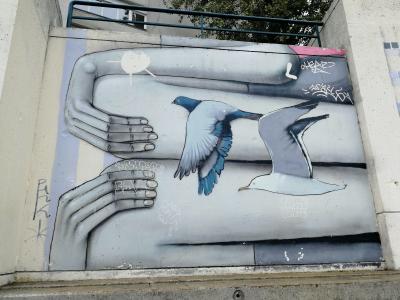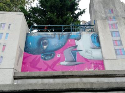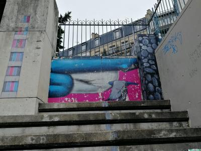 L'oeuvre est de type graffiti. Vous pouvez l'admirer dans la ville de Paris en France et plus précisément ici : 27 Rue Piat, 75020 Paris, France.