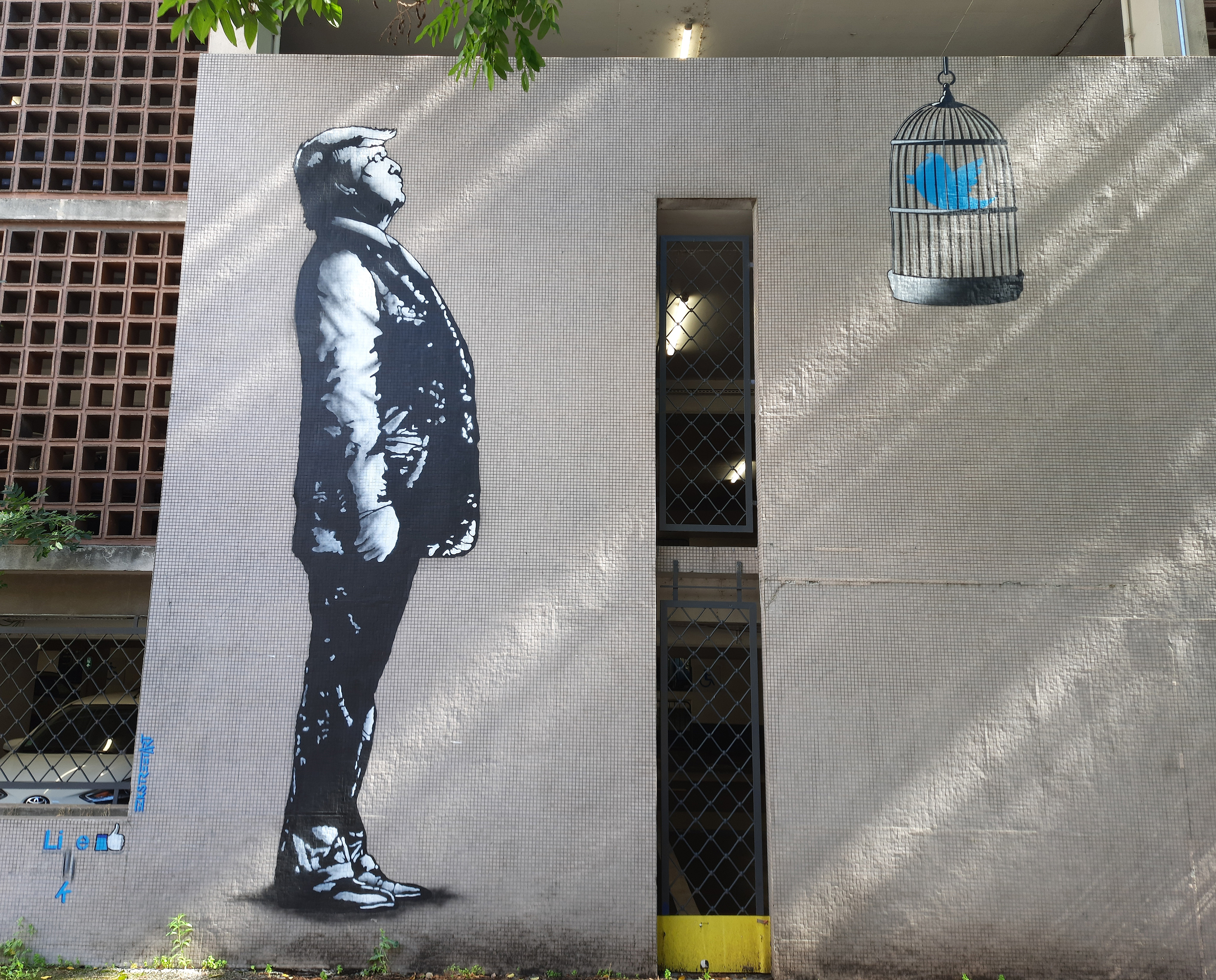 Eric ZeKing est un street artiste français. Il joue avec les mots et les situations. Il travaille par association…