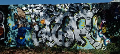 L'oeuvre est de type graffiti. Vous pouvez l'admirer dans la ville de Nantes en France et plus précisément ici : 6 rue Saint Domingue_ Bat le Karting, 44200 Nantes, France.